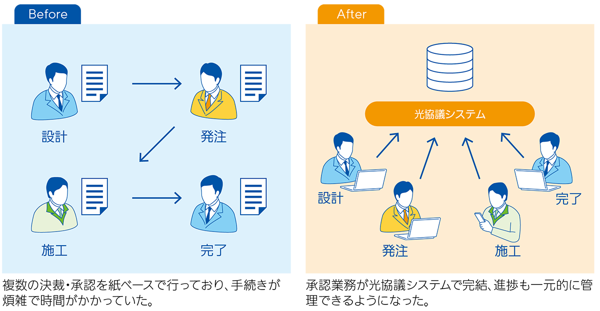 - 複雑な工事協議業務の効率化のため、kintoneをベースにワークフローシステムを導入