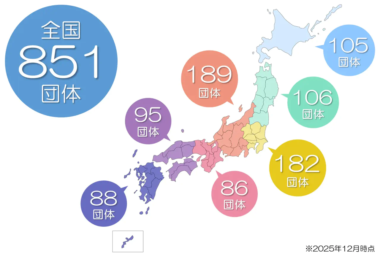 システム導入・サポートや販売について、全国のパートナー様との協業により、全国800団体以上にご導入いただいております。